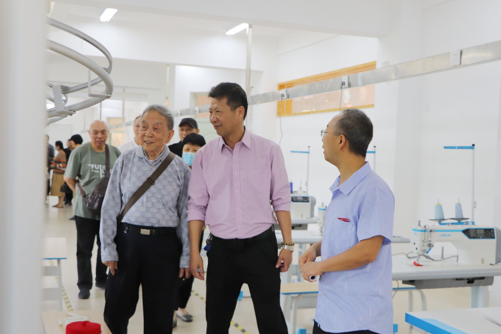 知悉南平退休老同志们到学院开展党日活动,学院党委领导早早就在行政楼门口等候,大家一到就在行政楼前合影留念。随后,大家们乘坐接驳车游览观光校园环境,并先后参观了学院圣农产业学院、喜马拉雅产业学院、安博榕软件产业学院、依尔婴服装产业学院以及食品教学实训室、500人多功能报告厅、图书馆等,给老同志留下了深刻印象,大家一致感叹:“变化太大了!”。十多年前,党支部组织老同志参观过一次,那时候学院从建阳搬迁延平不久,只有几栋教室、宿舍、食堂和办公楼,环境整治、校园绿化刚开始做,学院师生的教学和生活条件十分艰苦。如今,一栋栋教学楼、宿舍楼、实训楼拔地而起,标准的400米跑道运动场、造型别致的图书馆、崭新的多功能会场等教学配套设施一应俱全。校园整洁、绿树成荫、错落有致、环境优美,像一个大公园,是学生治学、生活、成长成才的好去处。