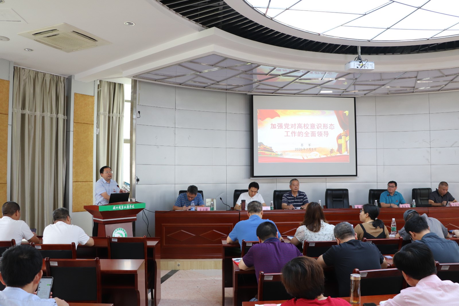 第一阶段由蔡军部长作《加强党对高校意识形态工作全面领导》专题培训。从深刻认识意识形态工作的重大意义,高校意识形态工作面对的复杂形势,如何做好高校意识形态工作三个方面结合学校意识形态和舆情工作开展辅导培训。要求每个党员干部都必须把意识形态工作责任扛在肩上,落在行动上,必须牢牢把握高校意识形态工作领导权。肩负起为党和国家培养社会需要、信念坚定的新时代有用之才的重任。