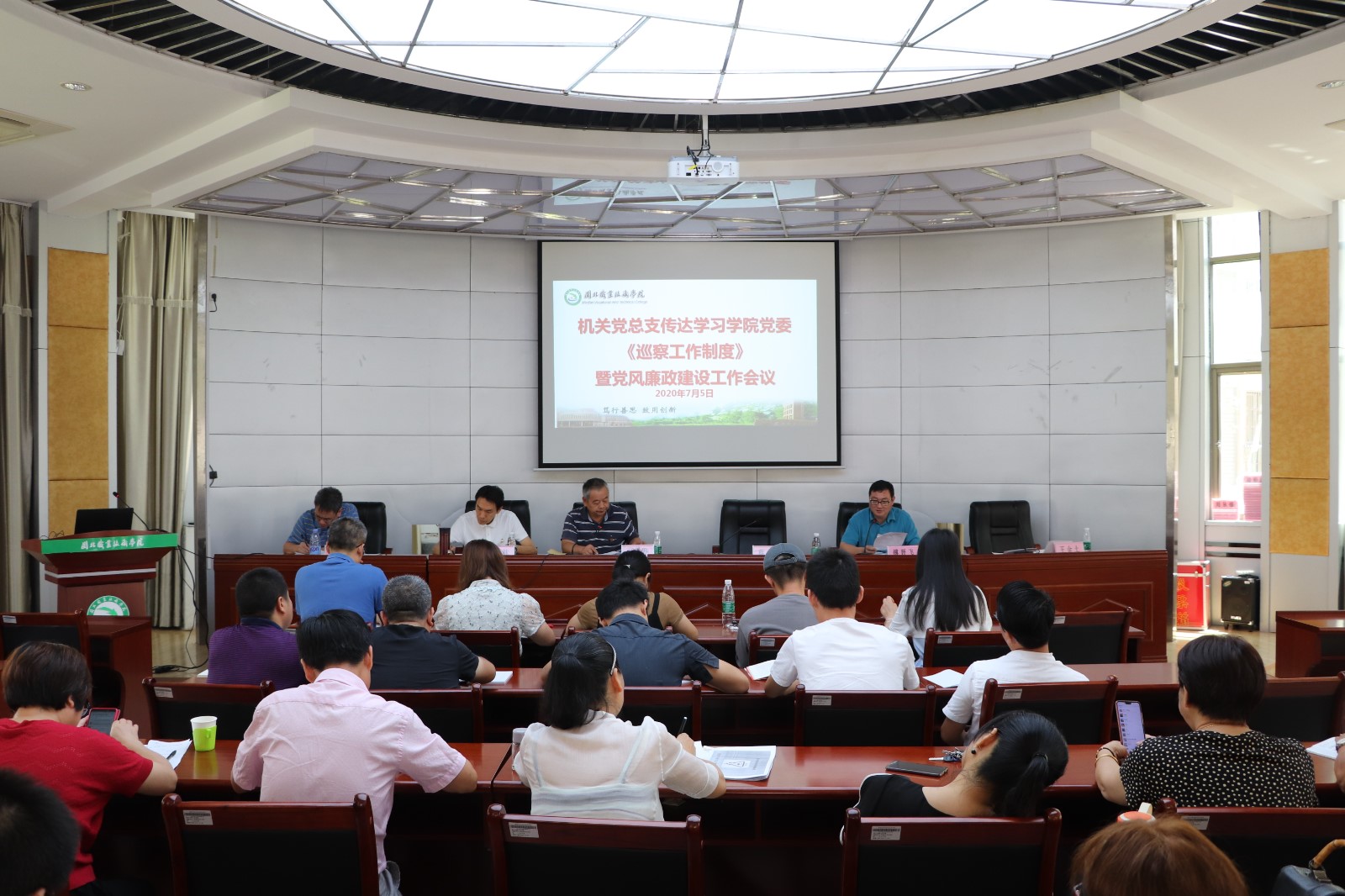 第三阶段:机关党总支纪检委员、学院纪检监察审计处郑定华处长传达学习《中共8040威尼斯委员会巡察工作制度(试行)》,并就有关条款进行了解释说明;会上,还针对教职工身边形式主义和官僚主义、结合使用微信、开办网店等对学院机关各处室党风廉政建设工作提出了具体要求。