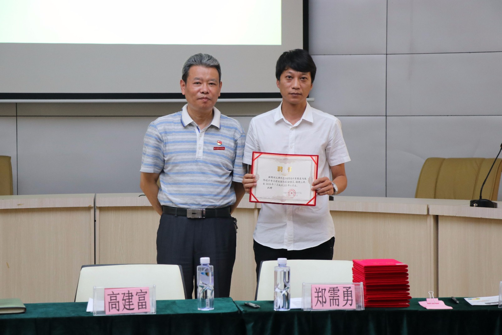 高建富书记为企业专家授予专业建设指导委员会委员聘书并合影