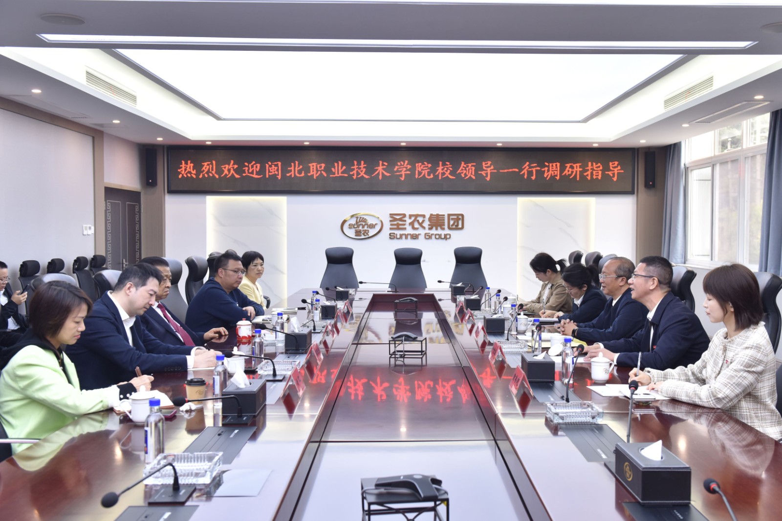 11月18日,学院党委书记张雄,党委副书记、院长叶世森带队前往光泽县,拜访福建圣农集团创始人、圣农发展董事长傅光明,并开展座谈交流。