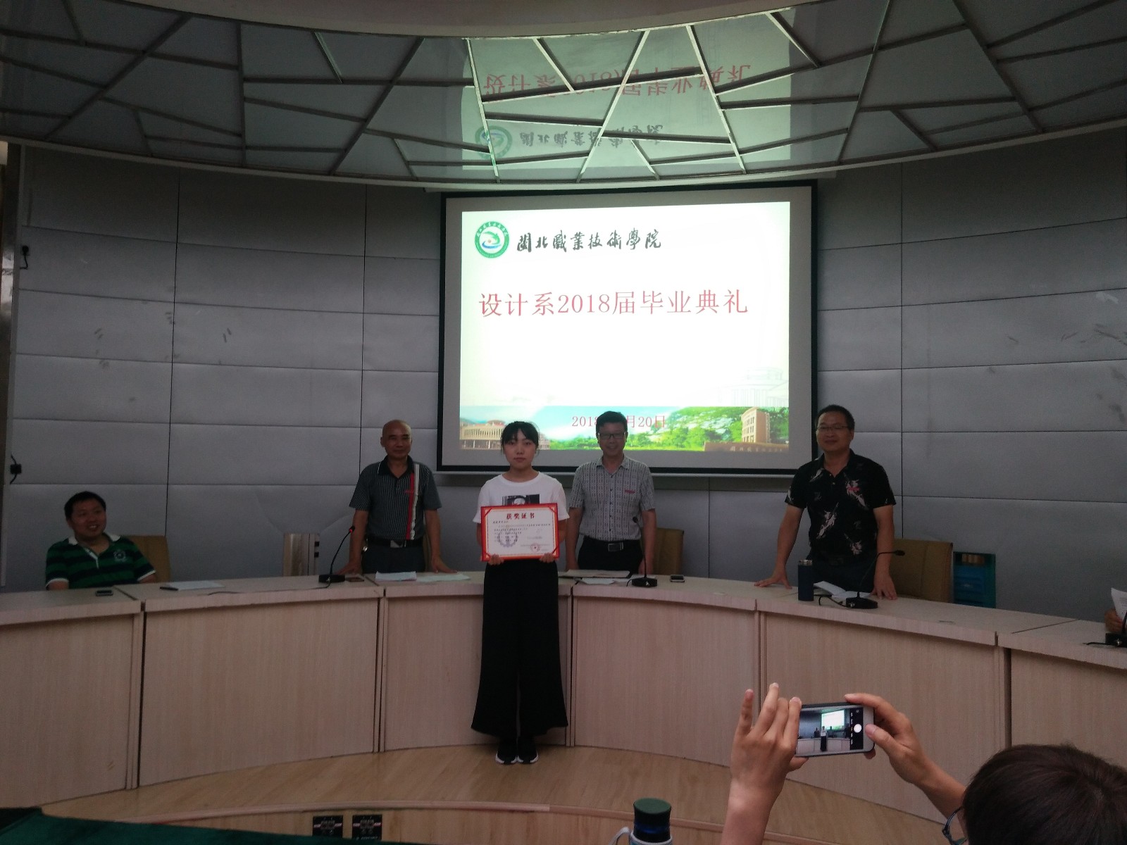 毕业生领取奖状证书合影