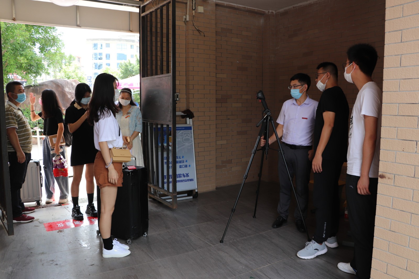 6月2日,是我校首批学生春季返校复学日。为积极响应学院党委号召,全力保障返校复学工作,学院机关党总支号召第一支部和第二支部,迅速组建了返校复学党员志愿服务队。为给返校的莘莘学子提供优质暖心服务,党员志愿者们组建了三个小分队,一队在校门口迎接、引导学生下车,帮助搬送行李到消毒处进行消毒。一队在体温检测门为同学们检测体温和进行防疫宣传。还有一队是爱心接送学生的车队。学校的大巴车,党员志愿者们的私家车,都纷纷加入了接送的队伍。车子有序的停放在校门口一侧的大道上,学生们一进校大门,就有党员志愿者们帮助搬行李,并引导坐上事先开好空调等候着的车子。党员志愿者们上午顶着烈日冒着炎热,下午又淋着暴雨,全天无休,从上午八点服务到晚上十点,为学生装行李,卸行李,搬行李,宣传防疫知识,嘘寒问暖。从校门口到宿舍,返校的同学们感受着学校的关怀爱护,心里充满了温暖和感动!