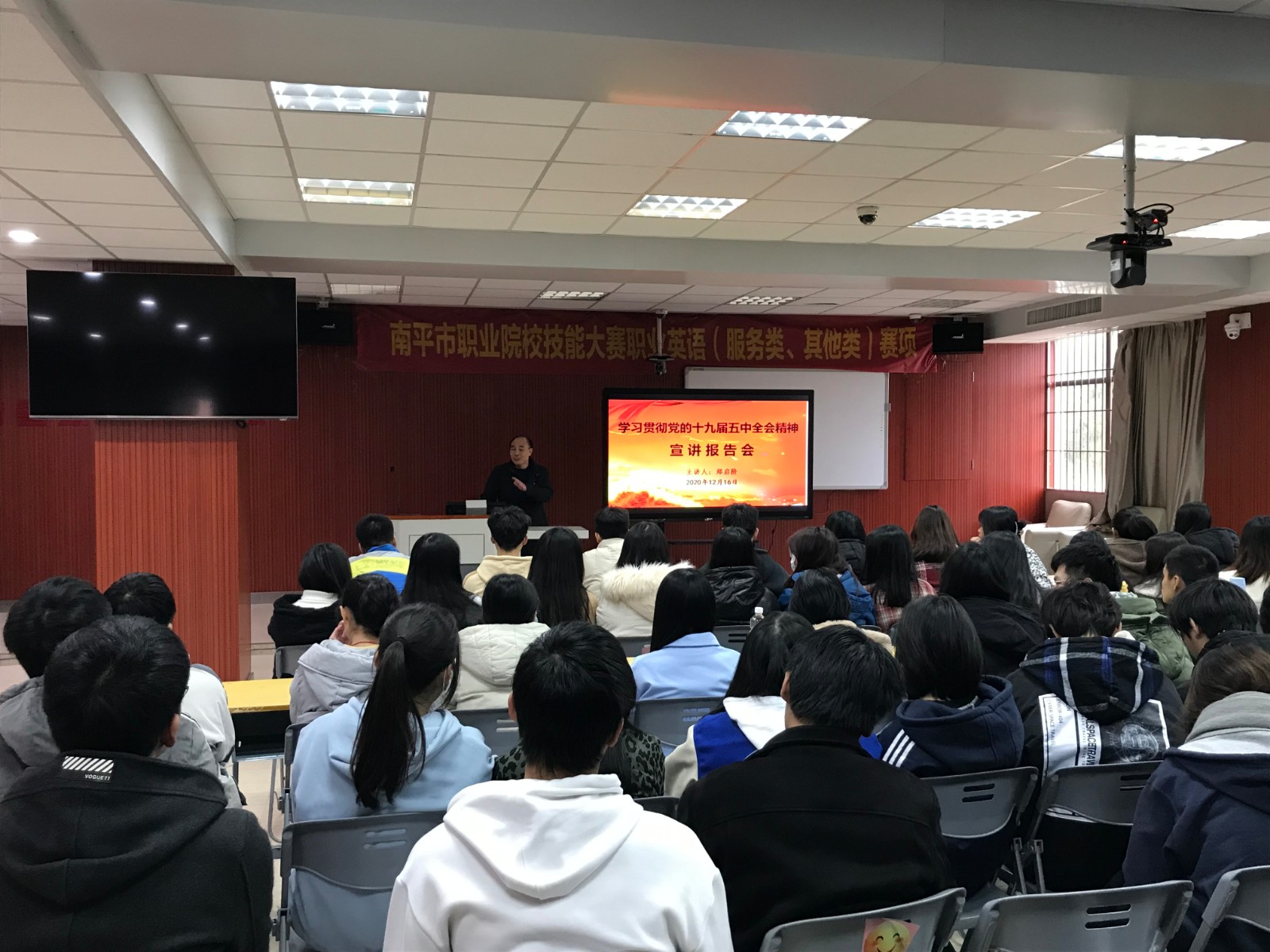 郑副书记主要从“十三五”时期取得的历史性成就、“十四五”经济社会发展主要目标、二0三五年远景目标三个方面进行了讲述,并结合实际对全体学生提出要求:一是要深入学习贯彻全会的精神,提高政治意识,提高思想觉悟,听党话跟党走;二是要扎实学好专业知识,提高自身专业技能;三是要加强综合素质的培养,注重综合能力的提升,为将来步入社会打下坚实的基础。
