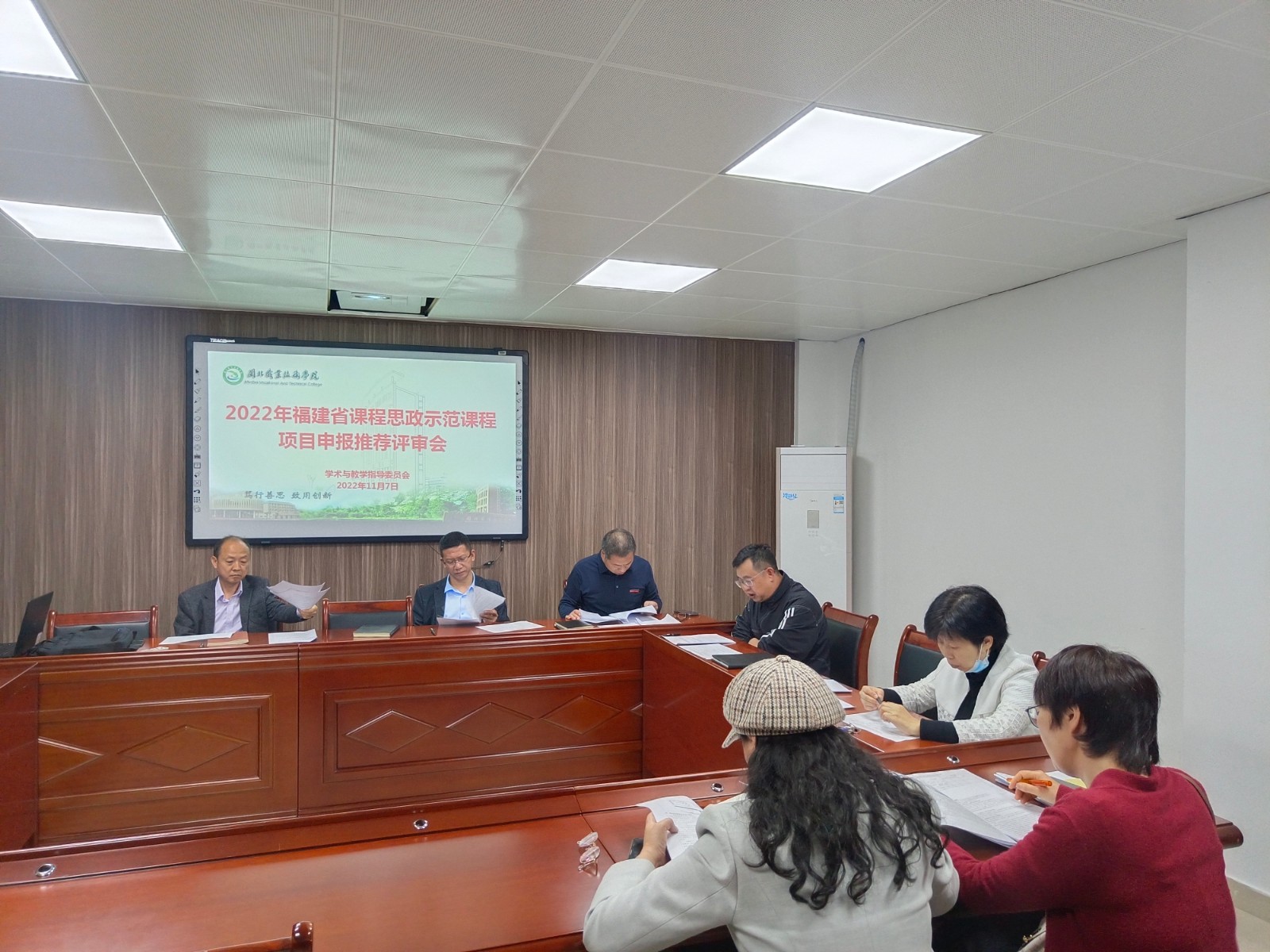 2022年11月7日下午,院学术与教学指导委员会在行政楼607会议室召开2022年福建省课程思政示范课程项目申报推荐评审会