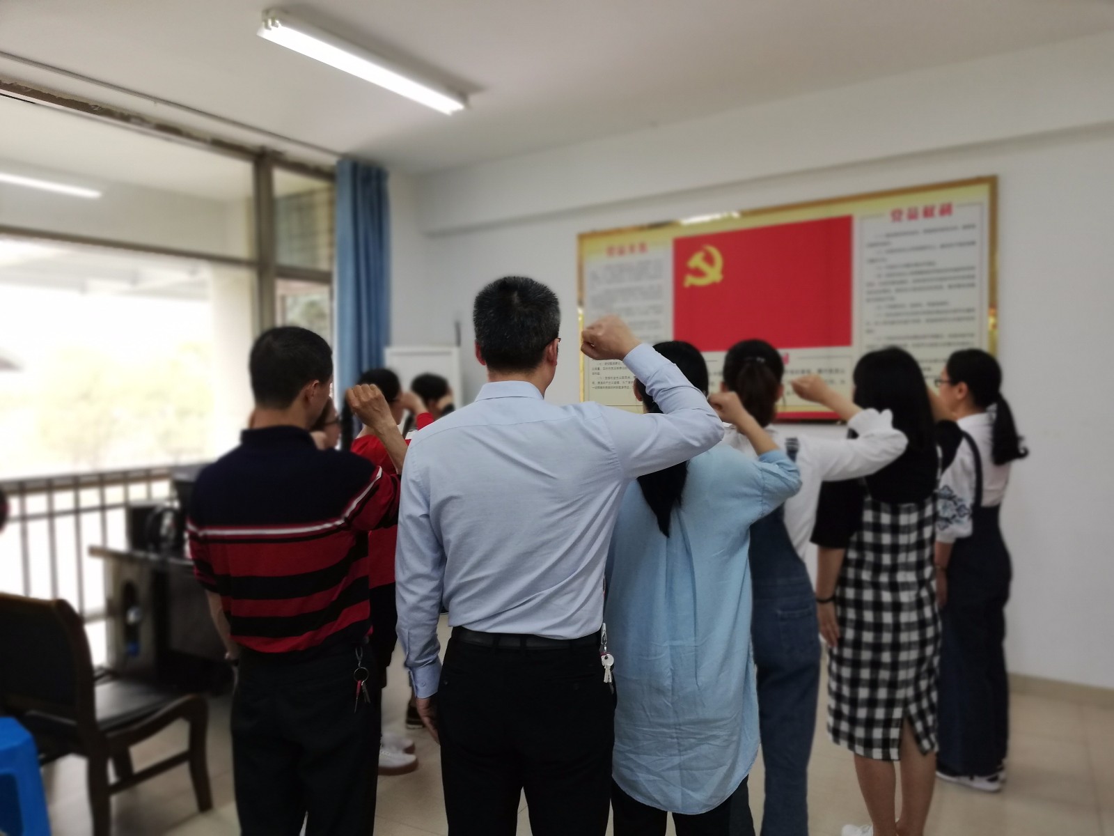 宣誓仪式在雄壮的《国际歌》声中拉开序幕。全体党员面对鲜红的党旗,在组织委员刘彩云同志的领誓下,庄严宣誓。座谈会上,预备党员同志纷纷表示,要牢记党的宗旨,不辜负组织的培养和期望,勤恳工作、踏实做人、服务群众,立志成为社会主义事业的优秀建设者和接班人;陈巧玲同志代表老党员作了发言,希望新党员同志们能够不忘初心,牢记使命,肩负责任,继续前进,努力做无愧于新时代的合格共产党员;最后,总支书记鞠建恩作了讲话,并对新党员同志们提出了三点希望和要求:一是要坚定理想信念,时刻牢记使命,不仅要在思想上入党,更要在行为上入党;二是要牢记全心全意为人民服务的宗旨;三是要时刻牢记自己是一名共产党员,要按照党员的标准严格要求自己,时时处处发挥党员的先锋模范作用,始终保持共产党员的先进性。