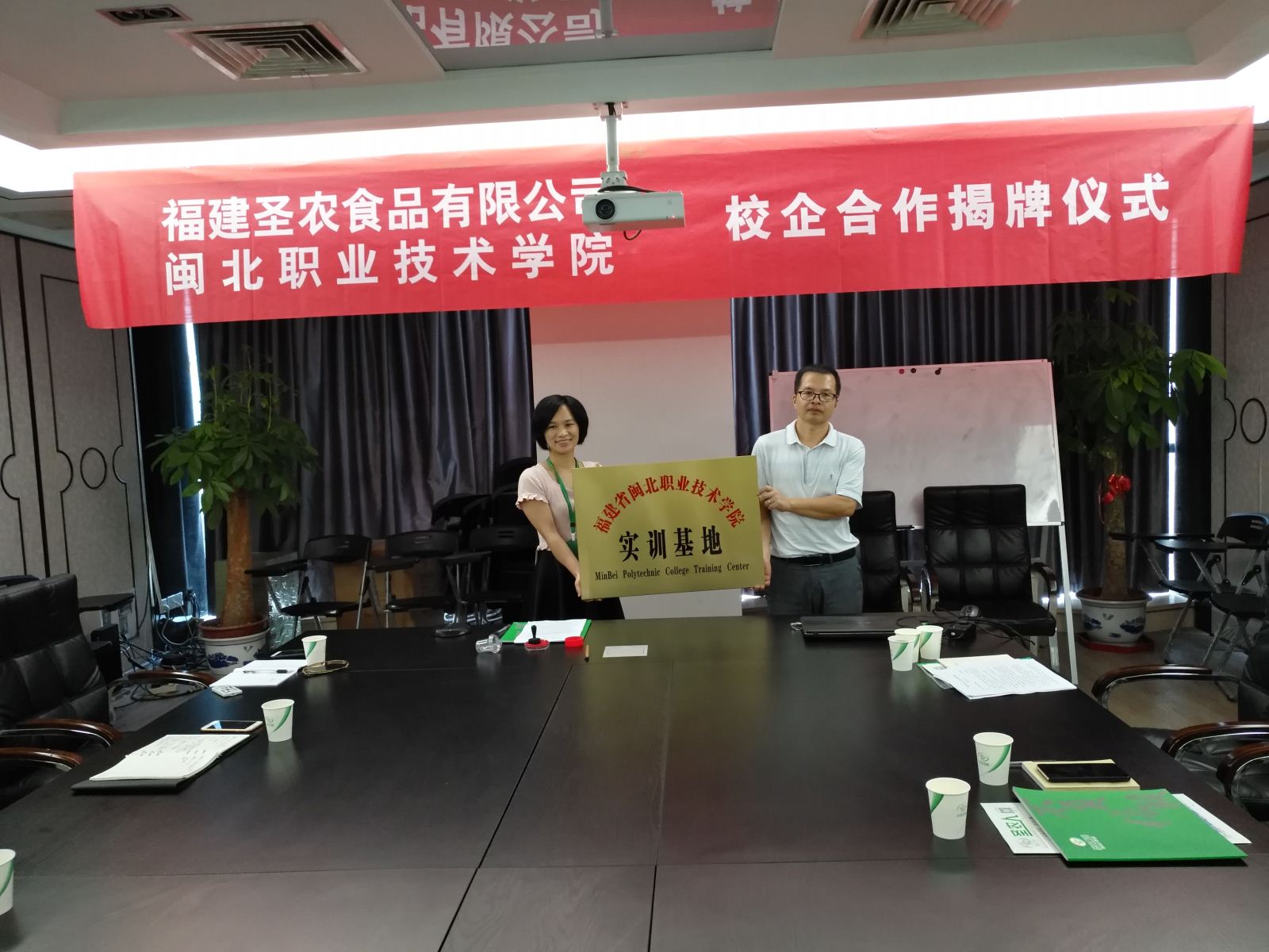 为拓展我系学生的校外实训,进一步深化校企合作,开辟学生毕业就业市场,2017年8月25日,食品与生物工程系郑启阶、鞠璐宁、黄妍等部分教师在系主任张金良的带领下,来到了福建圣农食品有限公司福州办事处洽谈校企合作事宜。双方就校企合作的有关事项进行了充分磋商,最后达成了一致意见签署合作协议,同时举行了隆重的揭牌仪式。