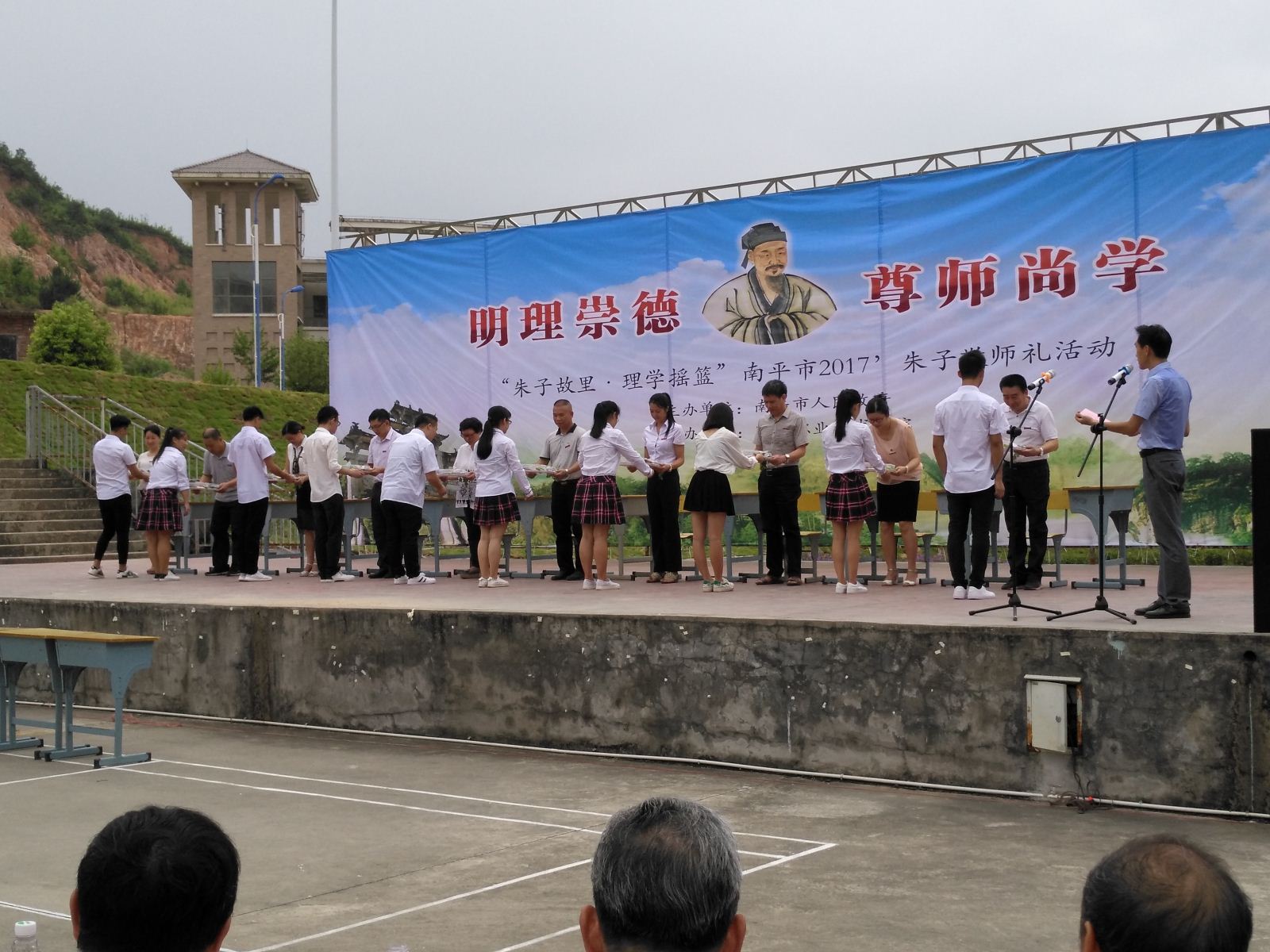 “朱子故里,理学摇篮,明理崇德,尊师尚学。”9月8日上午,伴随着同学们的朗朗声音,我院2017年朱子敬师礼活动拉开了帷幕,200多名学生怀着崇敬的心情向自己的老师行敬师礼。院领导高建富、陶金辉、姚荣、陈良壁等出席活动,活动由院团委副书记刘林主持,全体教师参加了活动。敬师礼活动分四节:致鞠躬礼,缅怀中华先贤;呈敬师帖,表达尊师心声;行释菜礼,传承文化遗产;诵读典文,弘扬尚学之道。通过本次活动,让青年学生接受一次弘扬尊师重教美德、光大中华优秀传统文化的洗礼,思想境界得到一次升华。