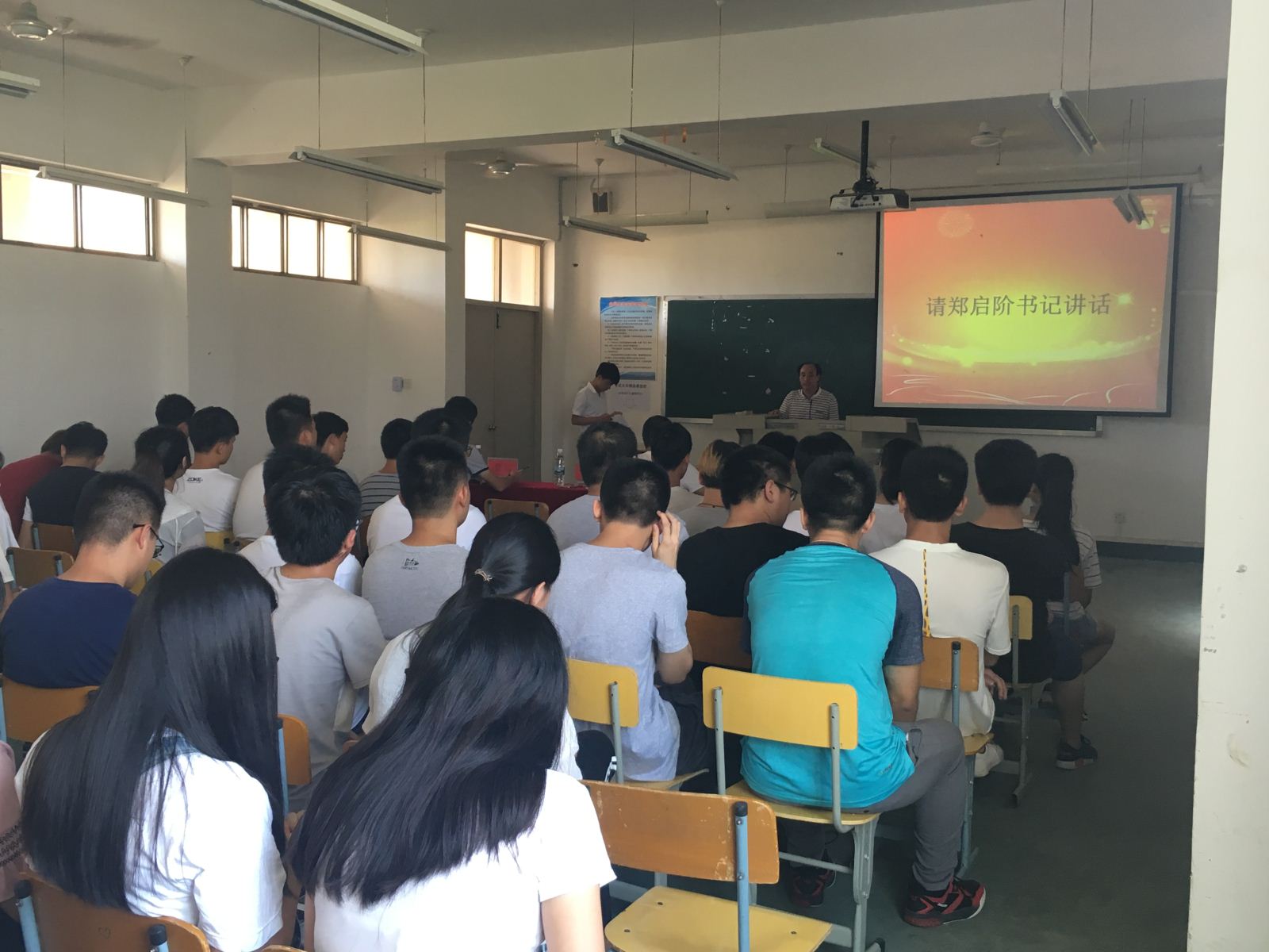 2017年8月31日下午,我系在教学楼204教室,召开了系学生干部换届仪式。系党总支常务副书记郑启阶老师,以及胡建辉、陈明龙两位辅导员出席了本次仪式。