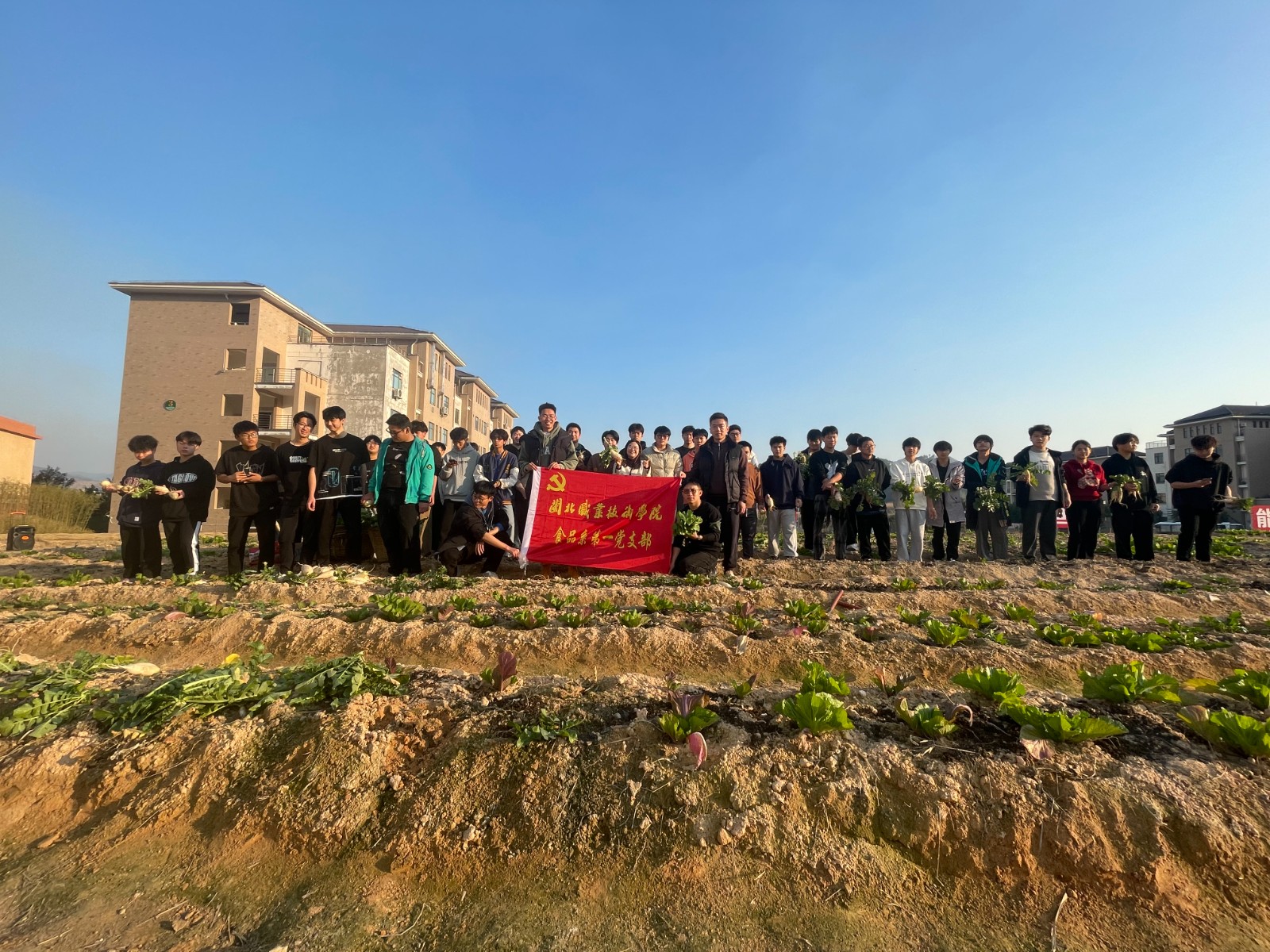 活动当天,阳光明媚。食品系的同学们携带工具,来到了学校附近的菜地。菜地里,一片丰收的景象。同学们兴奋地开始了采摘活动 ,在采摘过程中,同学们表现出了极高的团队协作精神。他们互相帮助,共同分享收获的喜悦。采摘结束后,同学们围在一起 ,拍下了本次大合照。大家纷纷表示,这次采摘活动不仅让他们体验到了劳动的快乐,更让他们深刻体会到了收获的满足感,同时这次活动也增强了同学们之间的友谊和团结精神。