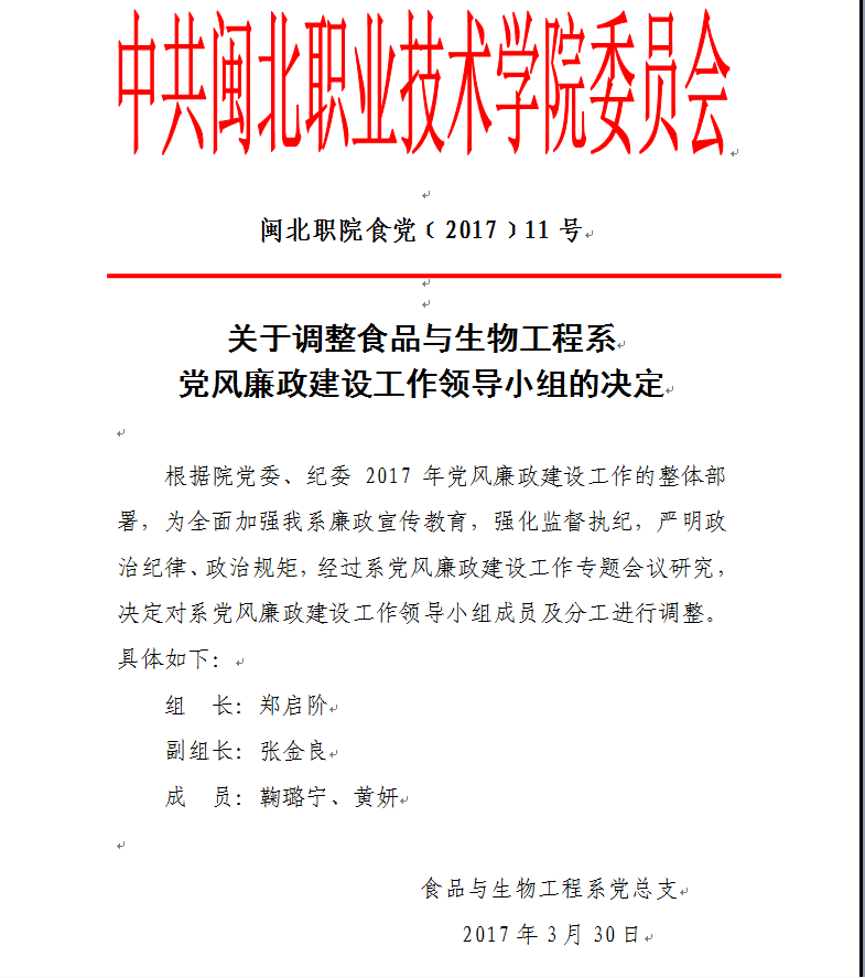 关于我系调整党风廉政建设工作领导小组的决定