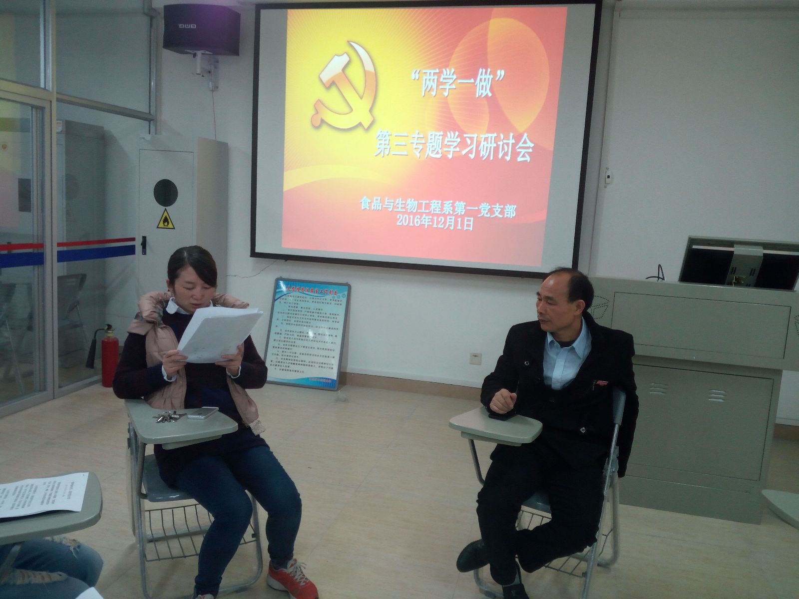 2016年12月1日下午,食品与工程系第一党支部召开了“两学一做”学习教育第三专题集中学习研讨会。会上部分党员汇报了各自的学习心得,大家互动交流,重点学习研讨了十八届六中全会精神、省第十次党代会精神、南平市第五次党代会精神、《关于新形势下党内政治生活的若干准则》及《中国共产党党内监督条例》等,学习研讨会在热烈的气氛中圆满结束。