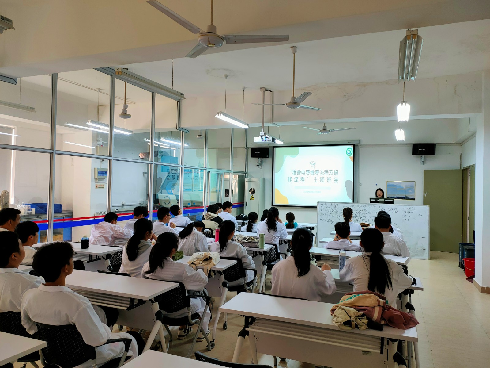班会上,班主任们耐心向同学们讲解了宿舍电费缴费流程及宿舍报修流程的具体操作,同时向学生普及了宿舍用电安全知识,提高学生的用电安全和保护宿舍公共财产意识。