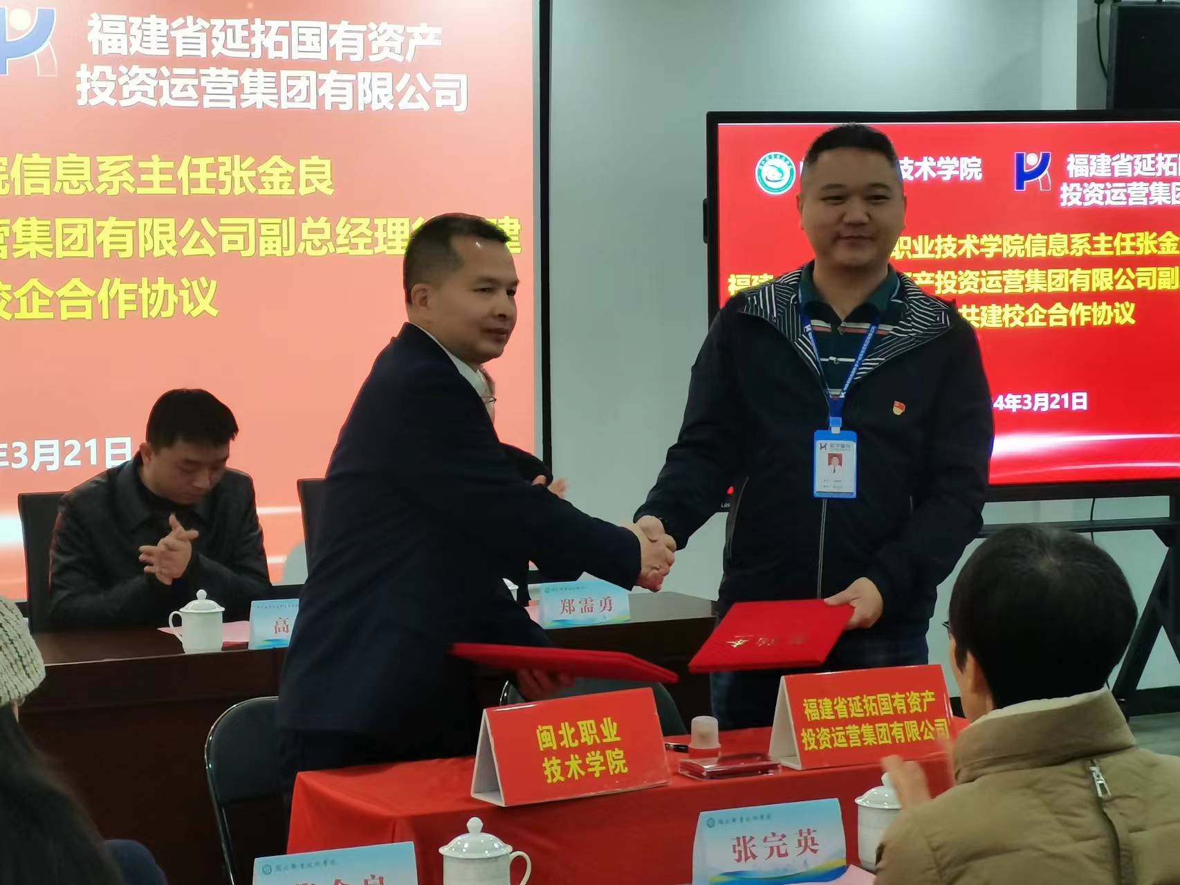 为搭建校企合作桥梁,推动产学研深度融合,助力学院高质量发展。3月21日上午,8040威尼斯与福建省延拓国有资产投资运营集团有限公司校企合作签约揭牌仪式在延平区电商产业园举行。学院党委委员、副院长郑需勇、中共延平区委组织部副部长高太明、信息系党总支副书记、系主任张金良出席签约仪式。