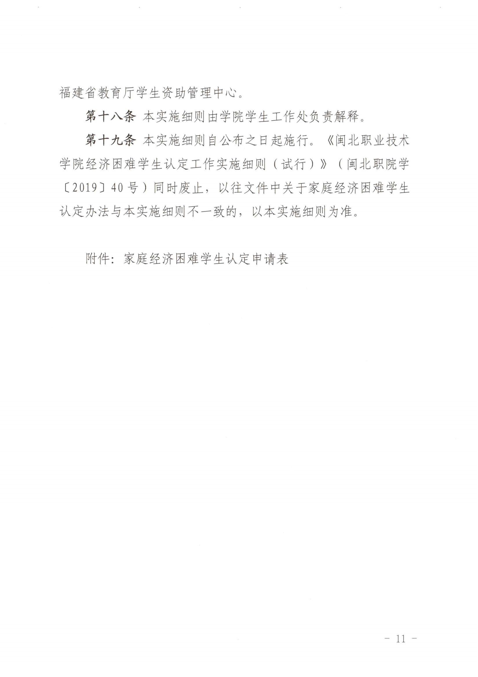 闽北职院〔2023〕36号 8040威尼斯家庭经济困难学生认定工作实施细则(修订)