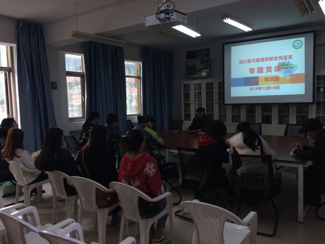 12月19日下午,设计系和管理系联合党总支在行政楼310室,举办专题党课讲座。设计系和管理系联合党总支常务副书记敖润富以《党员干部如何发挥模范带头作用》为题上专题党课,党总支全体成员聆听了此次党课。
