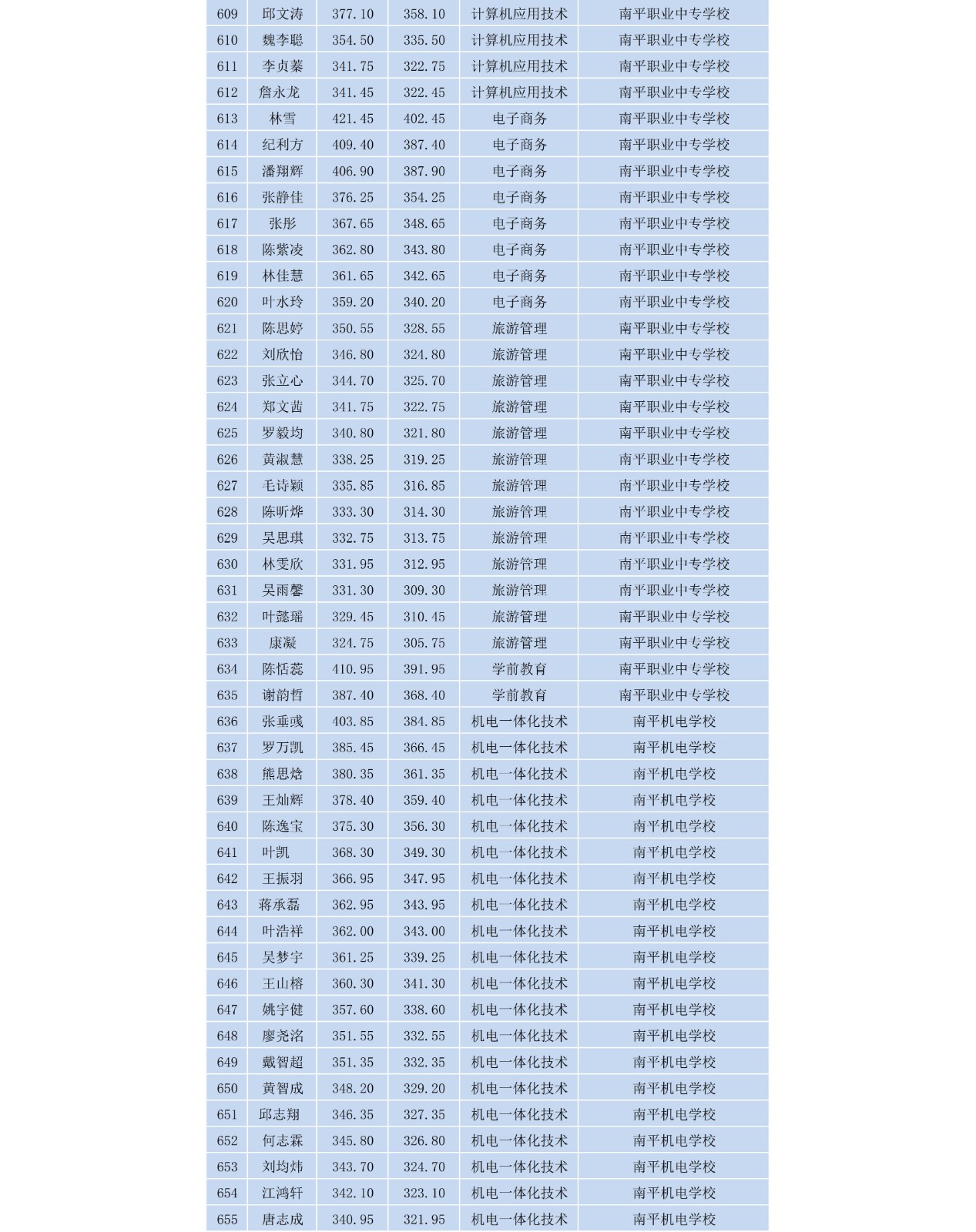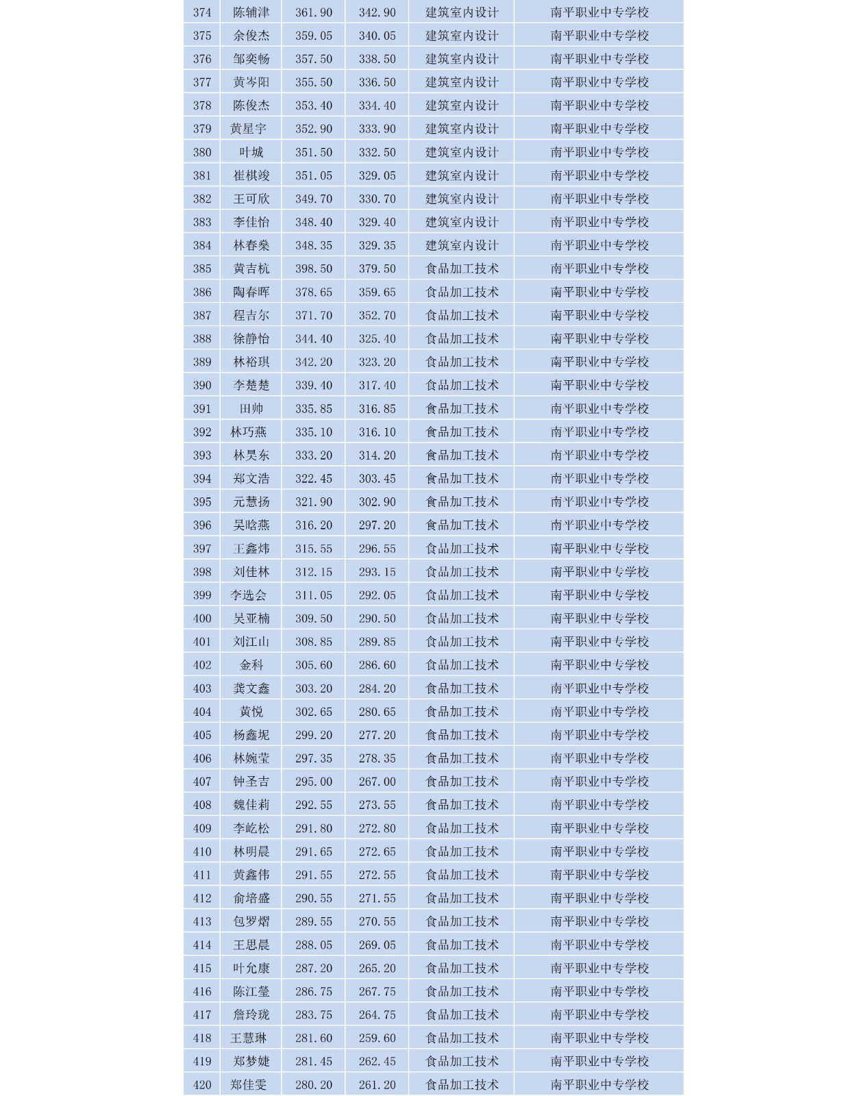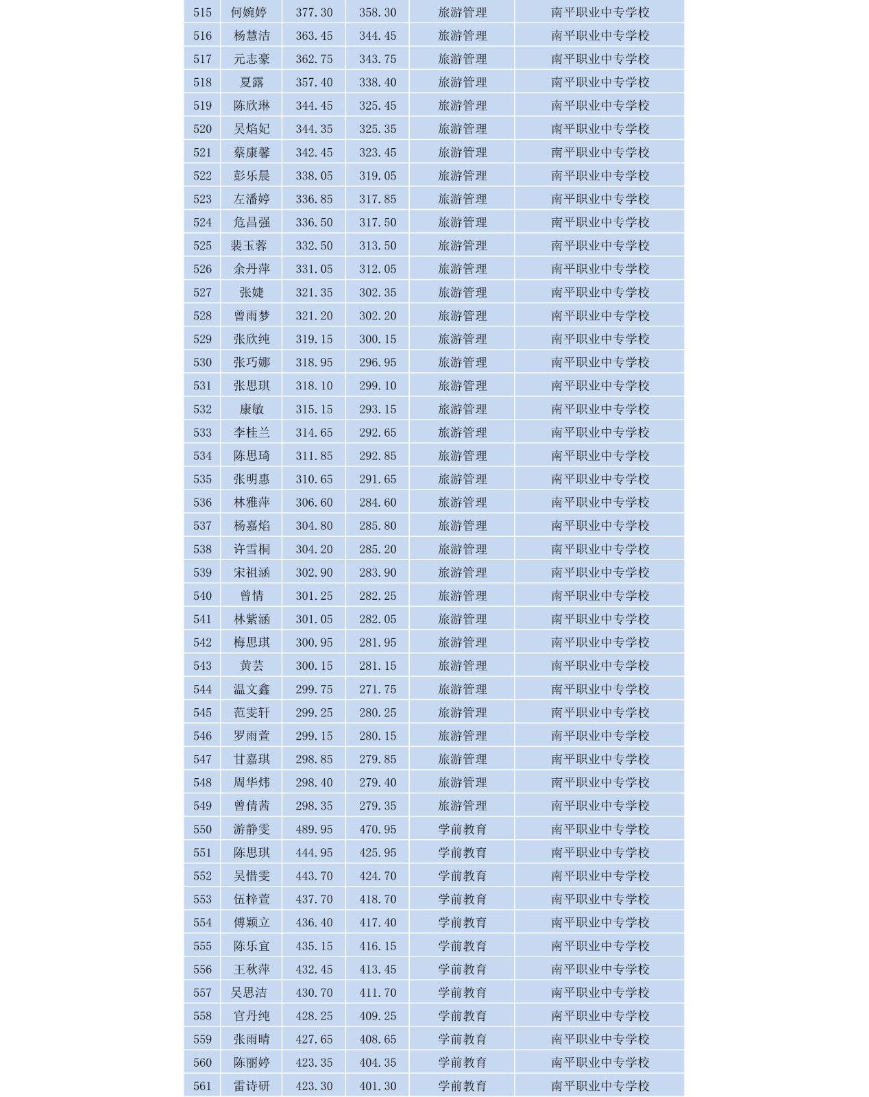 2020年8040威尼斯五年制高等职业教育新生录取名单(南平地区)