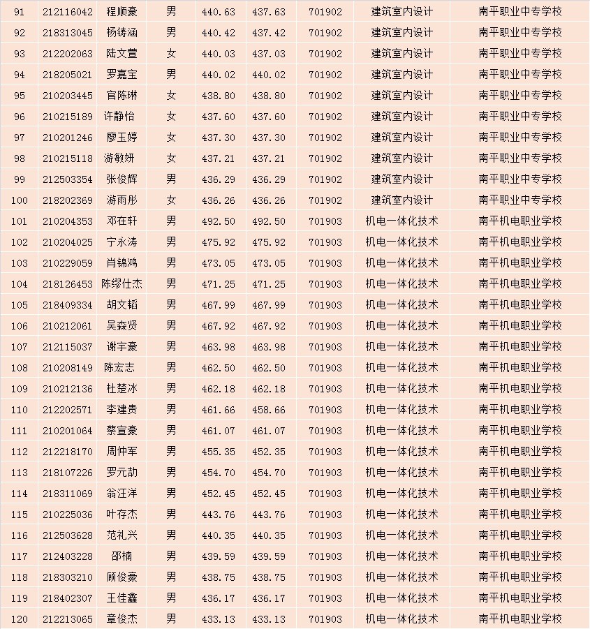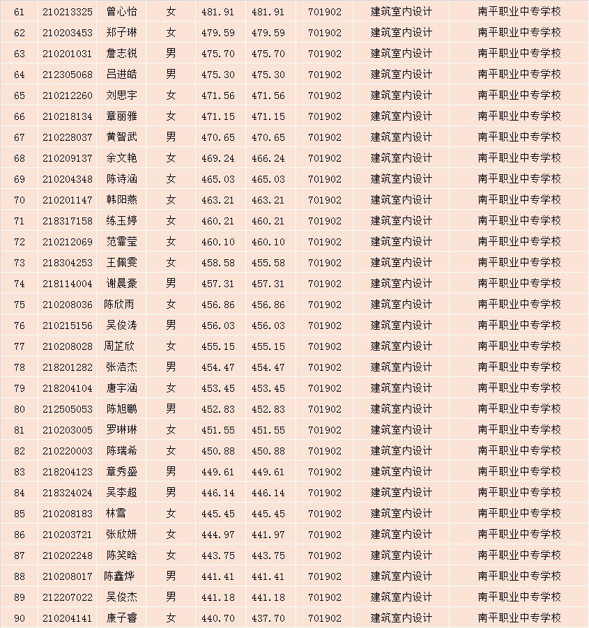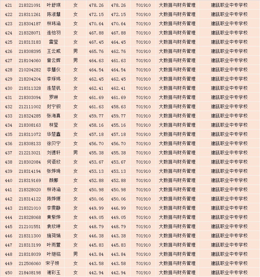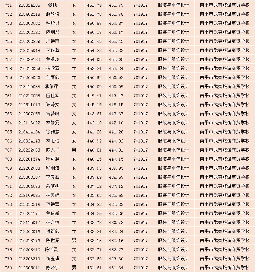 2021年8040威尼斯南平地区五年专各专业各联办校出档名单
