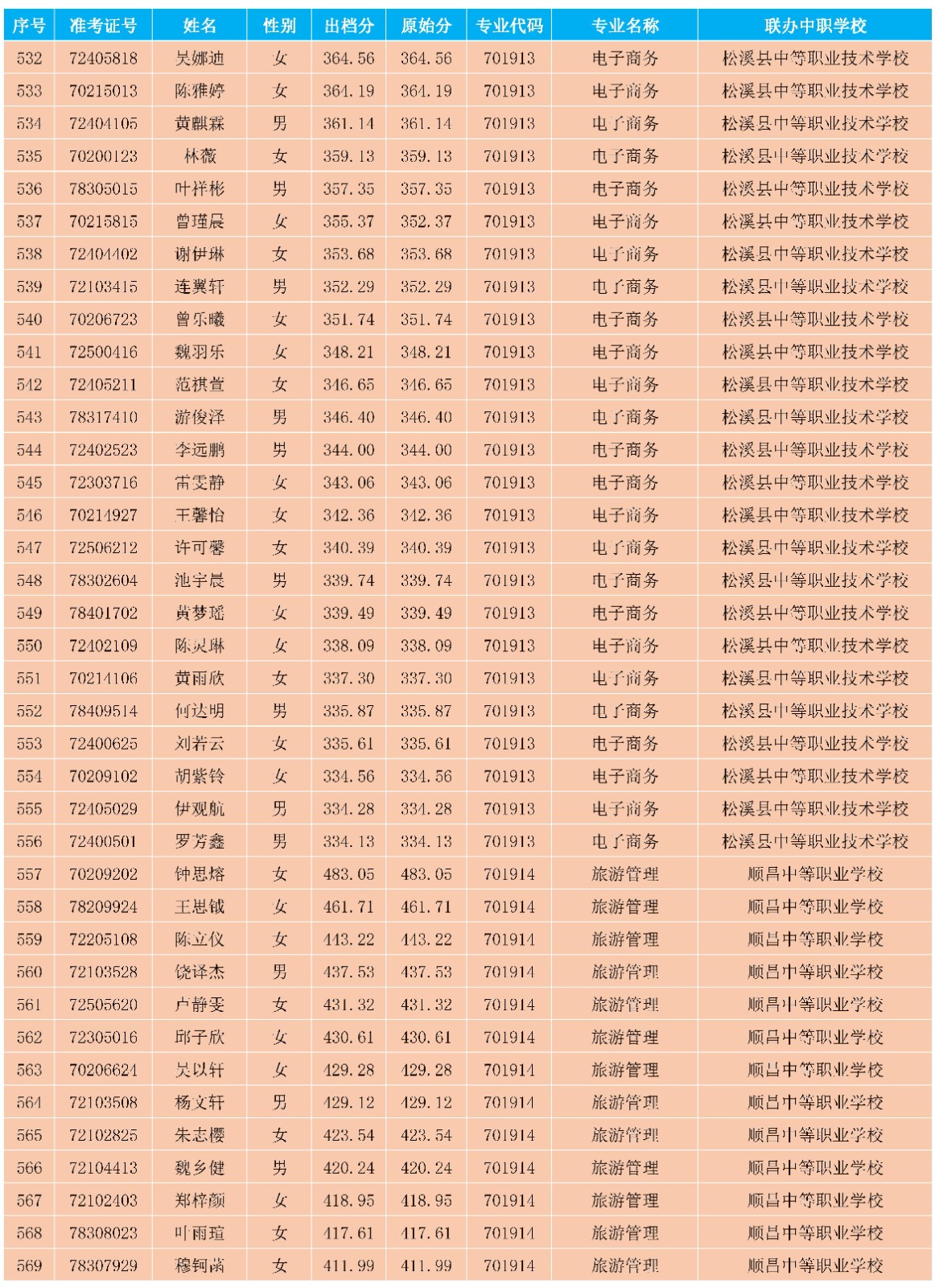 2025年8040威尼斯南平地区五年专各专业各联办校常规志愿出档名单